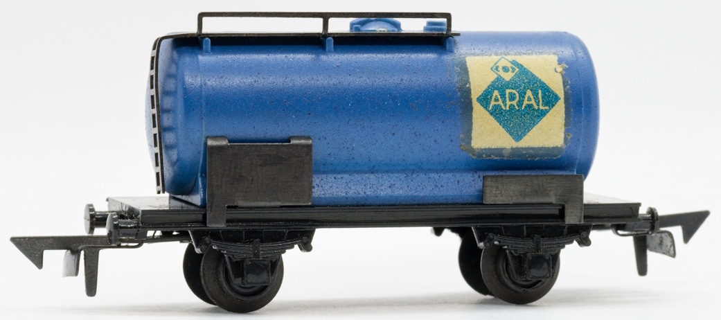 5/4127-028 - Varianta 2. - modrá plastová nádrž. - černé plechové panely bez popisků. - s bílomodrým obtiskem „ARAL“. - hladká ložná plocha. - kola černý plast. Firma: ARAL Původní cena v Markách: 4,45 |