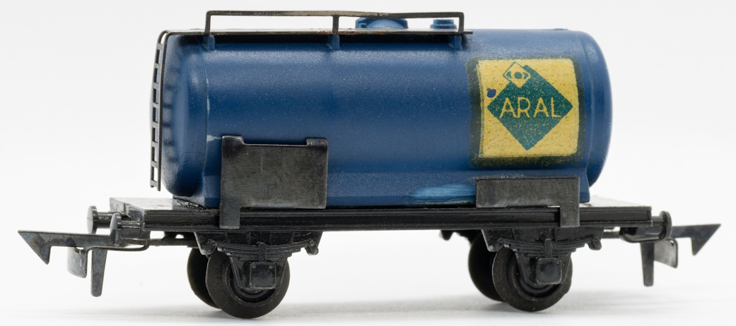 5/4127-028 - Varianta 4. - modrá plastová nádrž. - černé plechové panely bez popisků. - s bílomodrým obtiskem „ARAL“. - vlnitá ložná plocha. - kola litá. Firma: ARAL Původní cena v Markách: 4,45 |