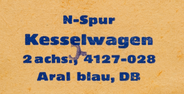 | Cisternový vůz Z - DB "ARAL" - Katalogové číslo: 5/4127-028 |