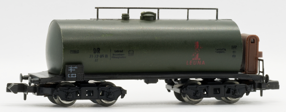 Cisternový vůz ZZ LEUNA DR. Model cisternového vozu na 4. nápravách s kabinou brzdaře. Vůz DRG, který později využívaly DR a DB Číslo položky: 5454660/5/31, 5454660/005/00031. |