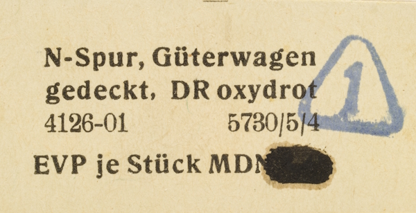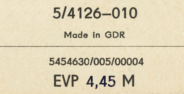 5/4126-010 - Varianta 3. - hnědý. - plastový, šroubovaný podvozek. - menší bílé popisky "DR". - bez značek posunovače - světle šedá střecha. Firma: 04-60-80 Původní cena v Markách: 4,45 |
