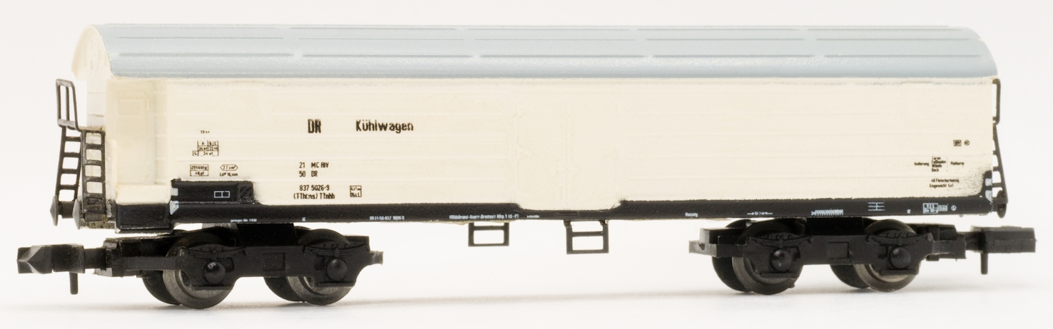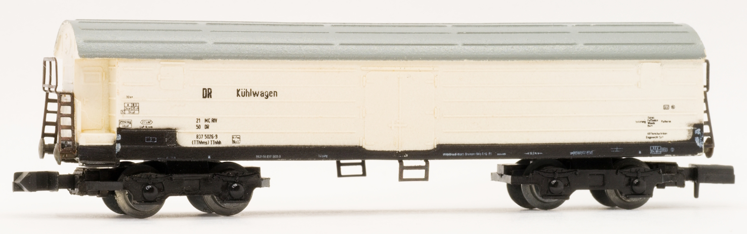 Model chladírenského vozu DR. V rámci RGW byla za konstrukci chladírenských vozů zodpovědná NDR, takže stejné modely byly používány v celém východním bloku. Číslo položky: 5730/5/13 |