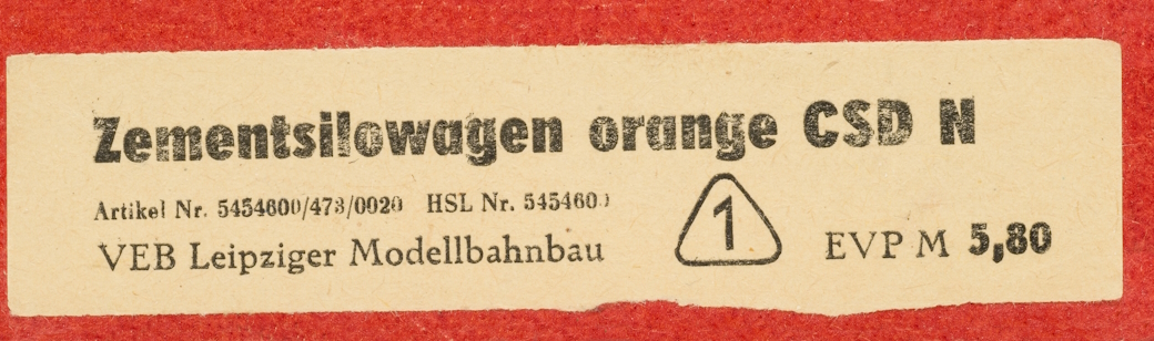 5/4420... tam je však zase jiné číslo položky 5454670/473/20 oproti štítkům na or. obalech kde je uvedeno 5454600/435/0020 nebo 5454600/473/0020 a nebo 5460/473 20... Tento vůz nemá ani značení ČSD,