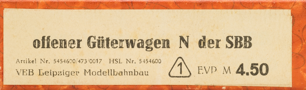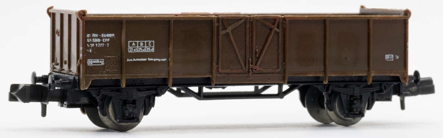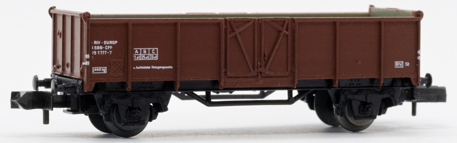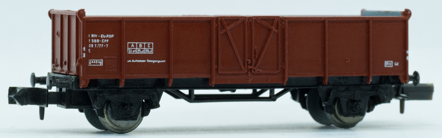 Model dvounápravového nákladního vozu E 505 SBB typu Omm29.