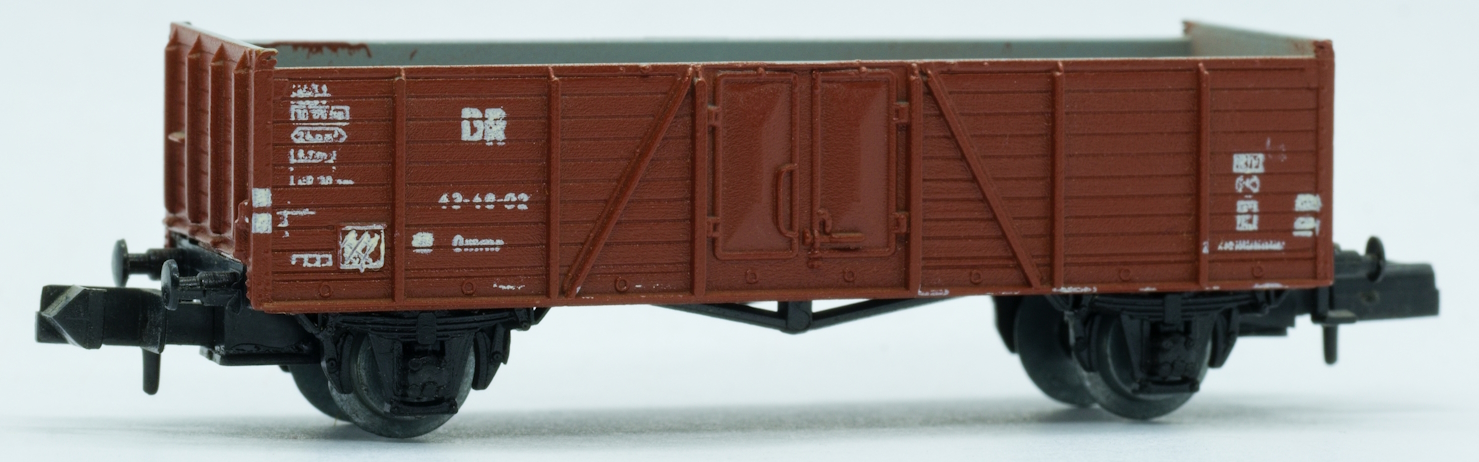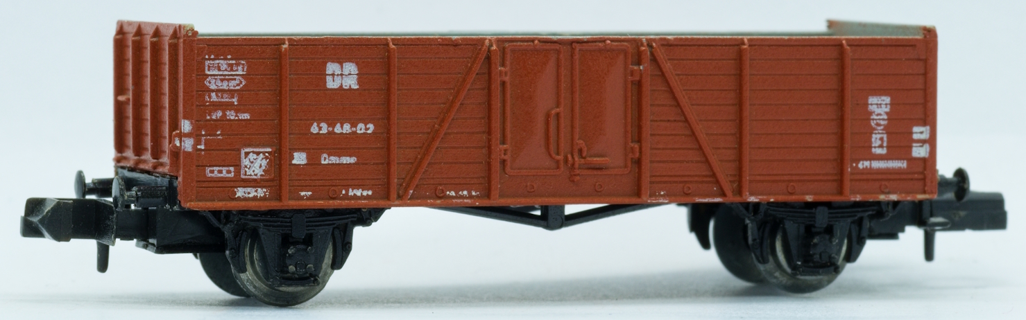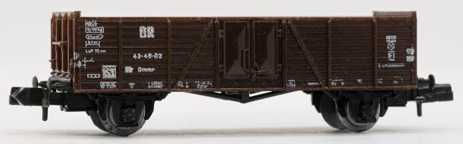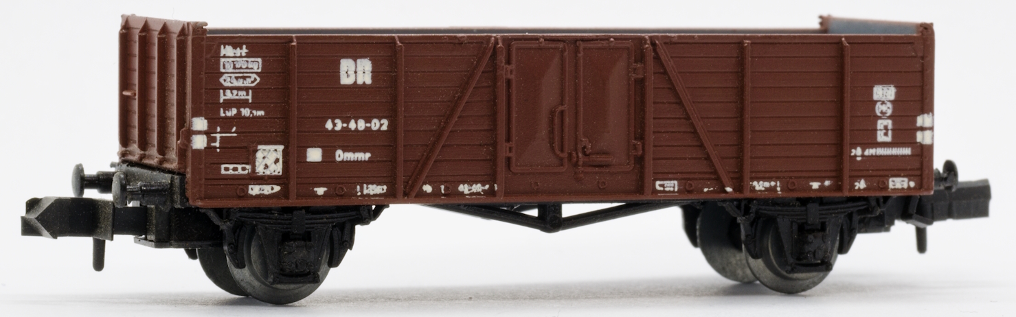 Model dvounápravového nákladního vozu s vysokou boční gondolou typu Omm33 DR. Základem modelu je gondola s dřevěnou konstrukcí a ocelovými dveřmi.